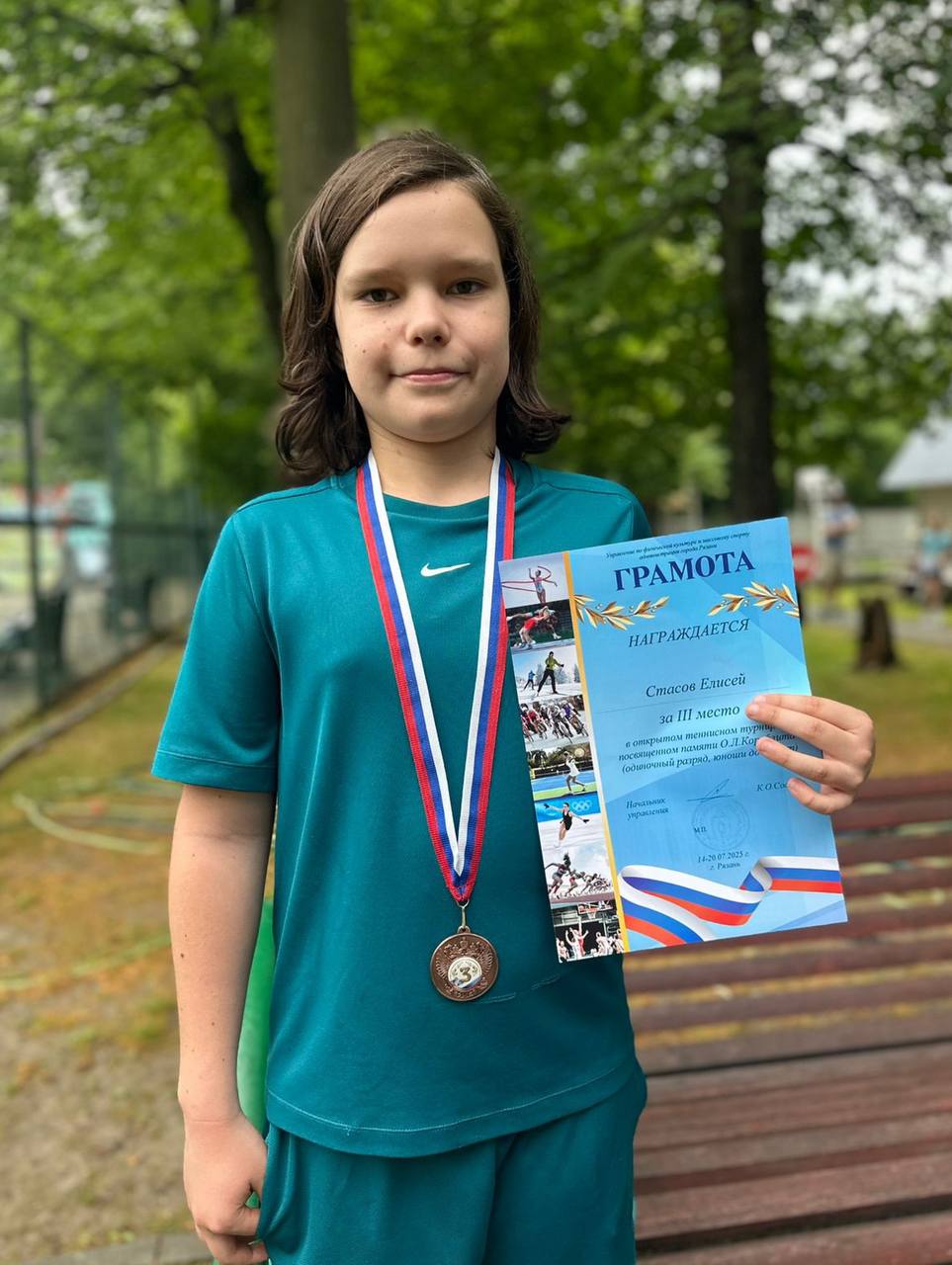 Поздравляем Стасова Елисея с третьим местом в открытом теннисном турнире, посвященном памяти О.Л.Корнблита, г. Рязань.